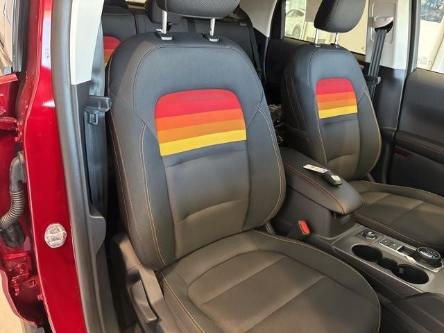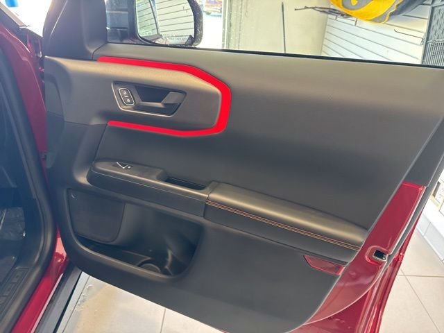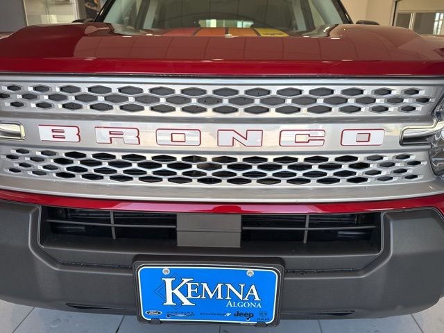 You can roam free in our 2025 Ford Bronco Sport Free Wheeling 4X4, which turns heads with 1970s style in Ruby Red Metallic! Motivated by a TurboCharged 1.5 Liter EcoBoost 3 Cylinder generating 181hp for an 8 Speed Automatic transmission for dynamic capability on the road or trail with multiple performance modes. You can also see nearly 28mpg on the highway in this Four Wheel Drive SUV, and it fits right in during urban journeys with its bold design. Our Bronco Sport features throwback graphics, LED lighting, two-color Bronco grille lettering, roof rails, alloy wheels, and a versatile tailgate with built-in flood lamps and flip-up glass.