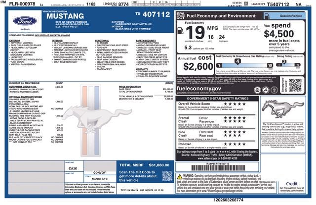 Carbonized Gray Metallic 2026 Ford Mustang GT 2D Coupe RWD 5.0L V8 Ti-VCT