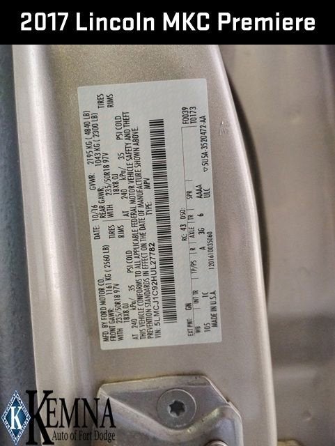 This MKC Premiere is available now at our dealership, and we're confident you'll be impressed by its quality and value. Don't miss your chance to make this exceptional vehicle your own. Contact us today to learn more and take the first step towards driving home in the 2017 Lincoln MKC Premiere.